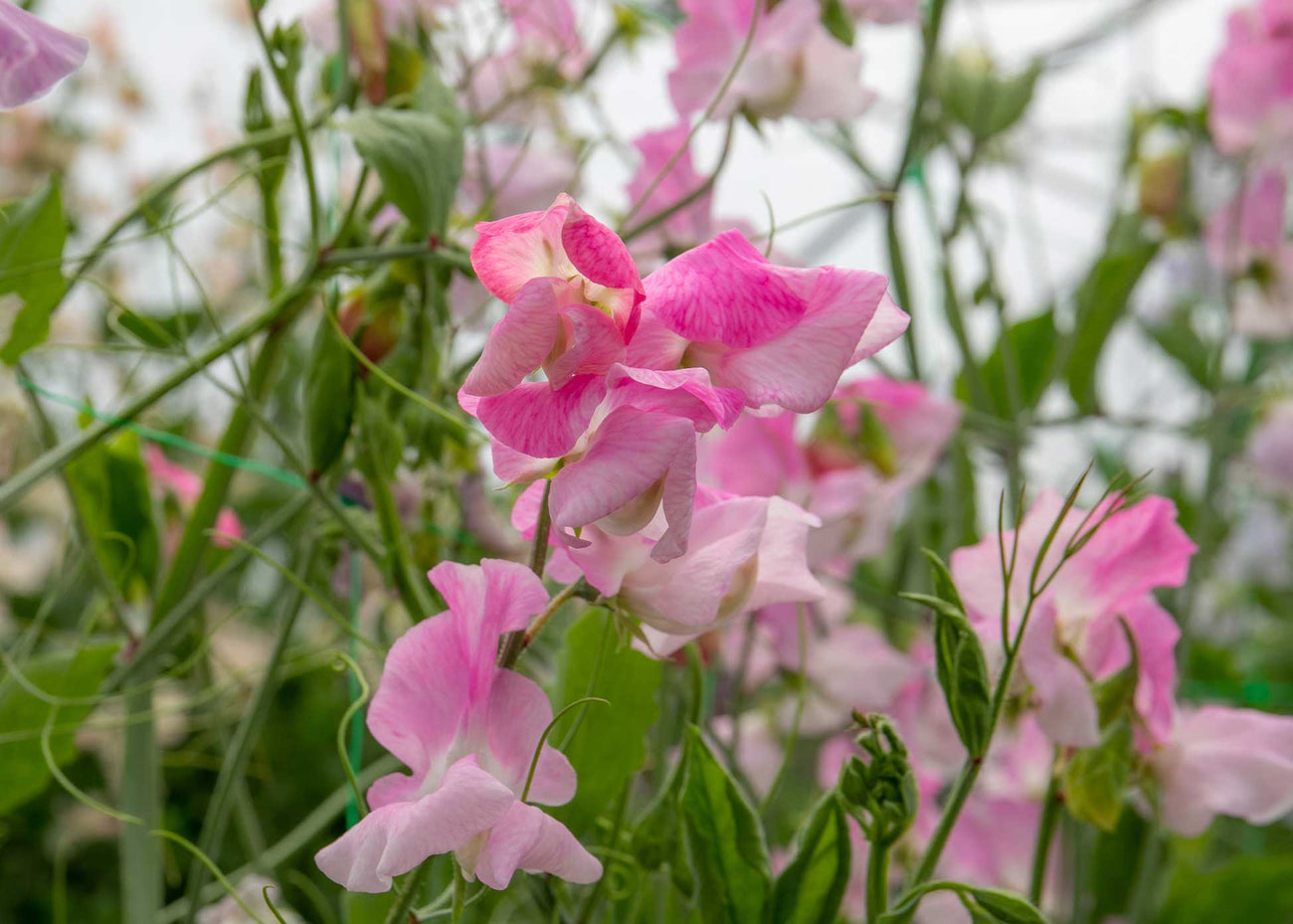 Spencer-type sweet peas with a beautiful fragrance and frilly flowers.
