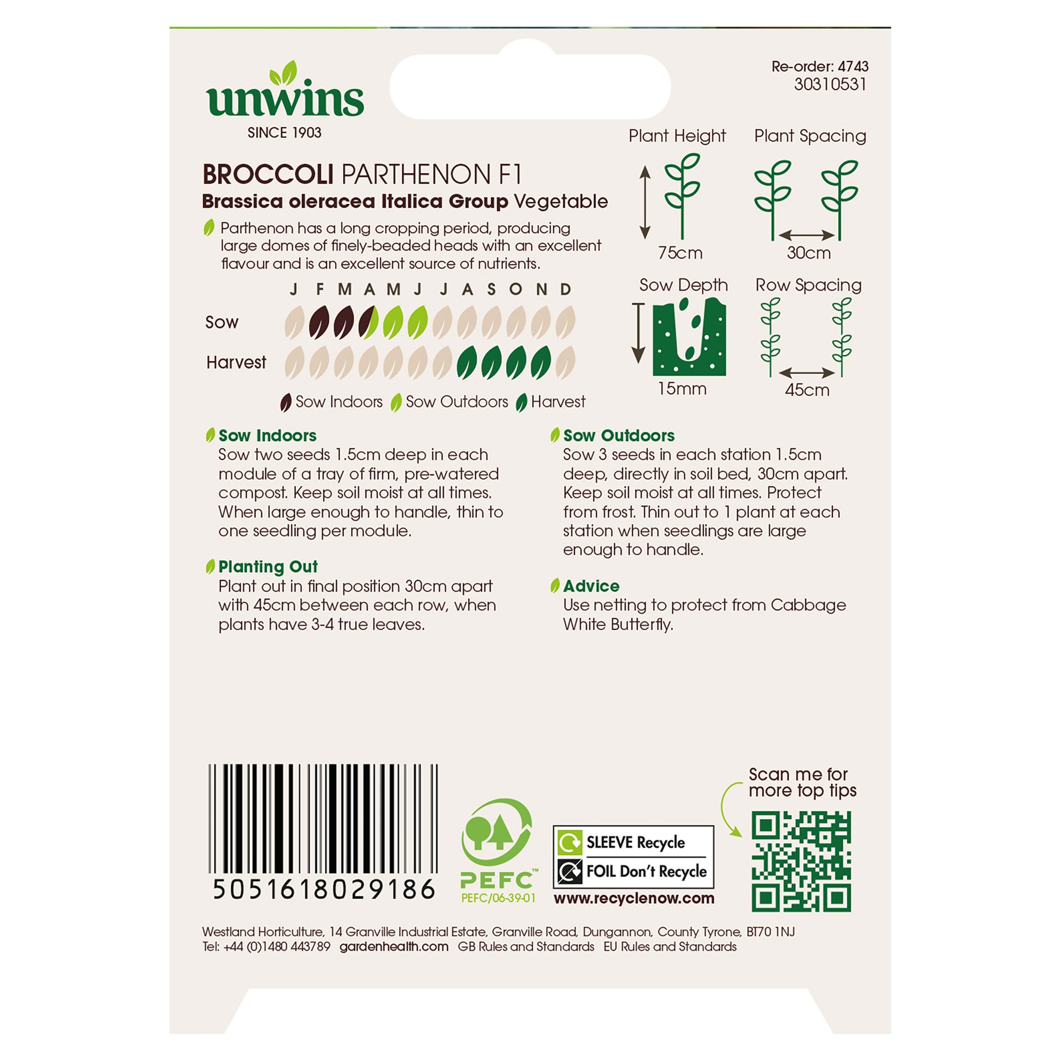 Unwins Broccoli Parthenon F1 Seeds are an excellent variety with tasty, short-stemmed florets. The broccoli head is an attractive blue-green colour and is an excellent source of nutrients.