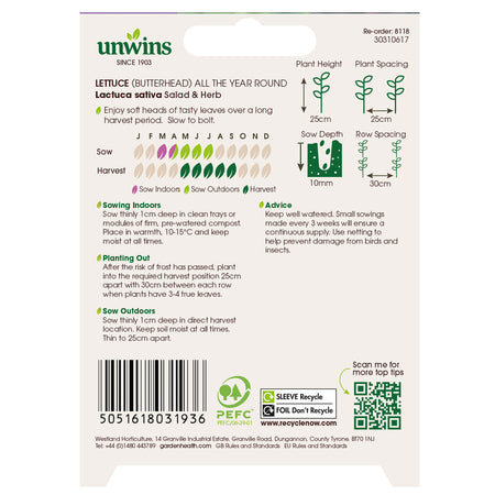 Unwins Butterhead Lettuce All the Year Round Seeds