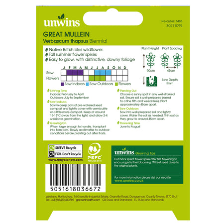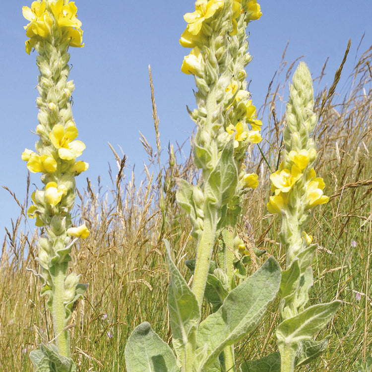 Nature's Haven Great Mullein are native British Isles wildflowers. These tall summer flower spike are easy to grow with distinctive downy foliage.