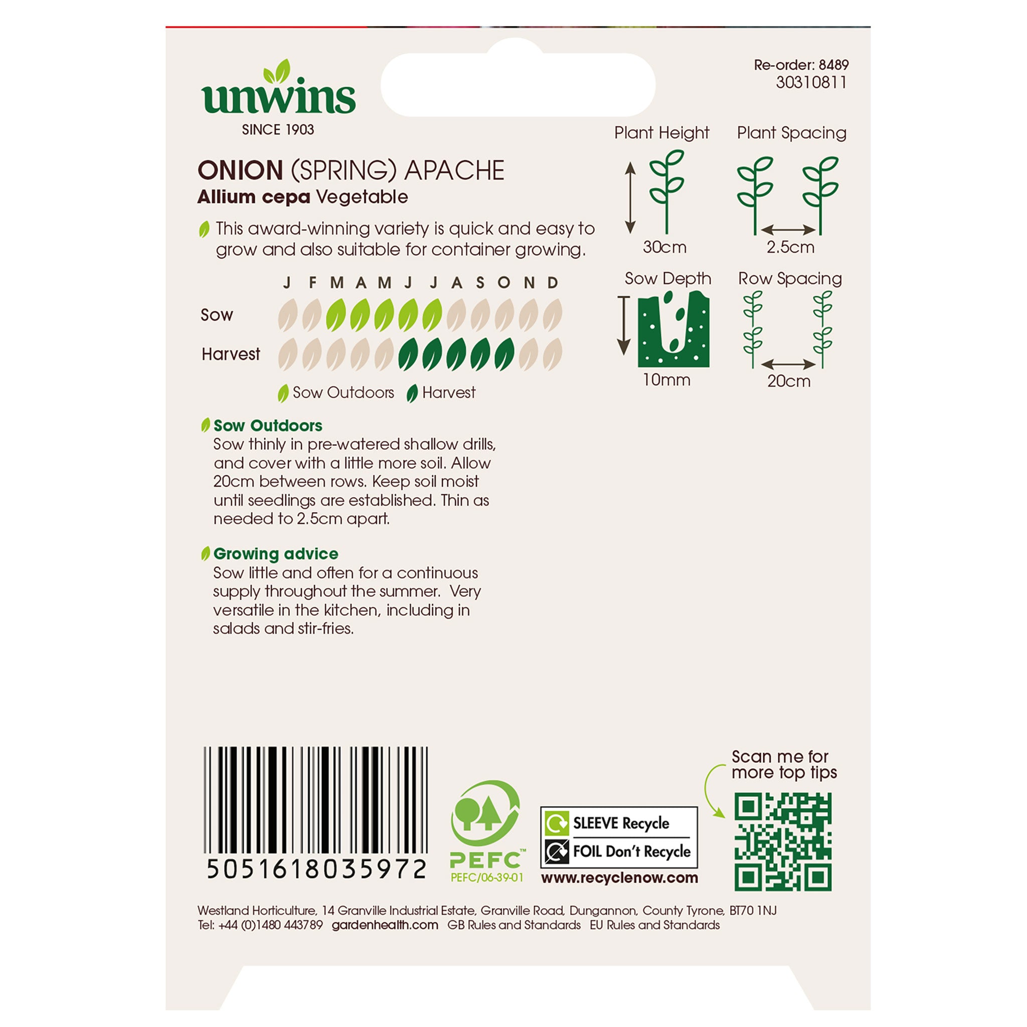 Unwins Spring Onion Apache have attractive purple skins with a lovely crisp texture and a mild flavour.