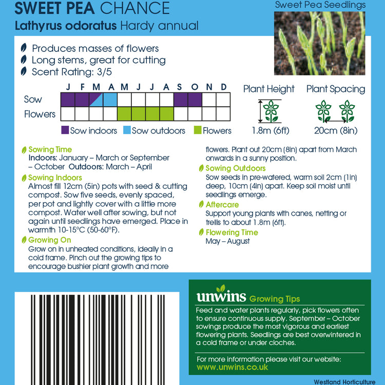 Unwins Sweet Pea Chance Seeds produce an abundance of eye-catching pink flowers with a scent rating of 3/5, they will bring a subtle sweet scent to your summer garden.